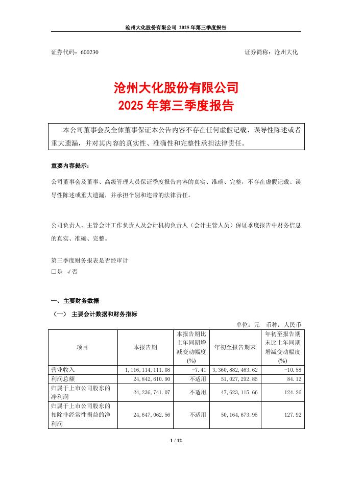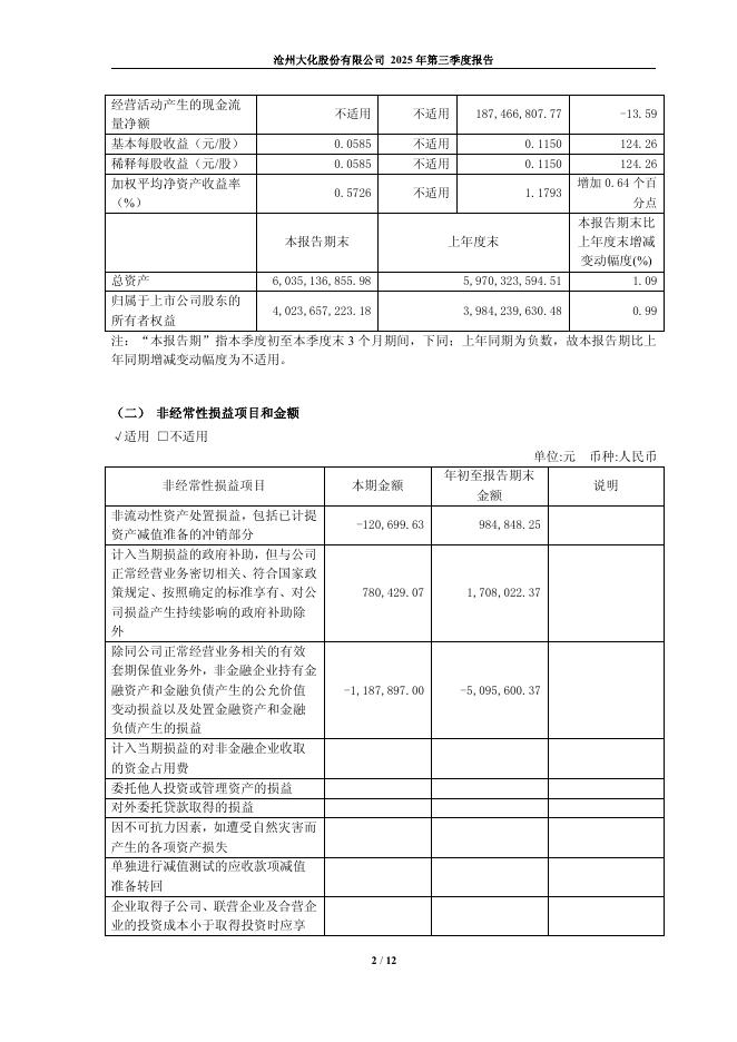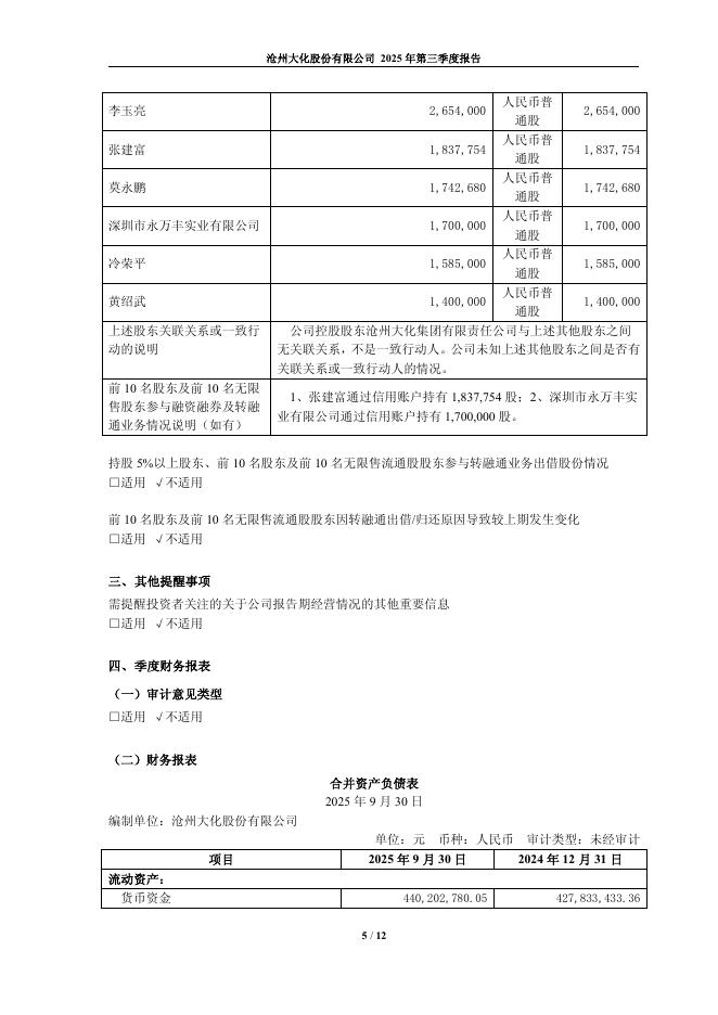 600230-沧州大化:沧州大化股份有限公司2025年第三季度报告.pdf