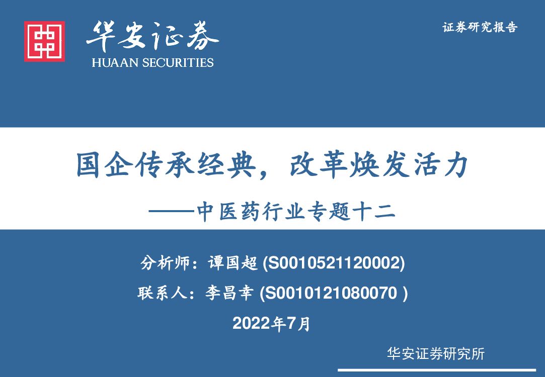 华安证券:中医药行业专题十二:国企传承经典,改革焕发活力.pdf