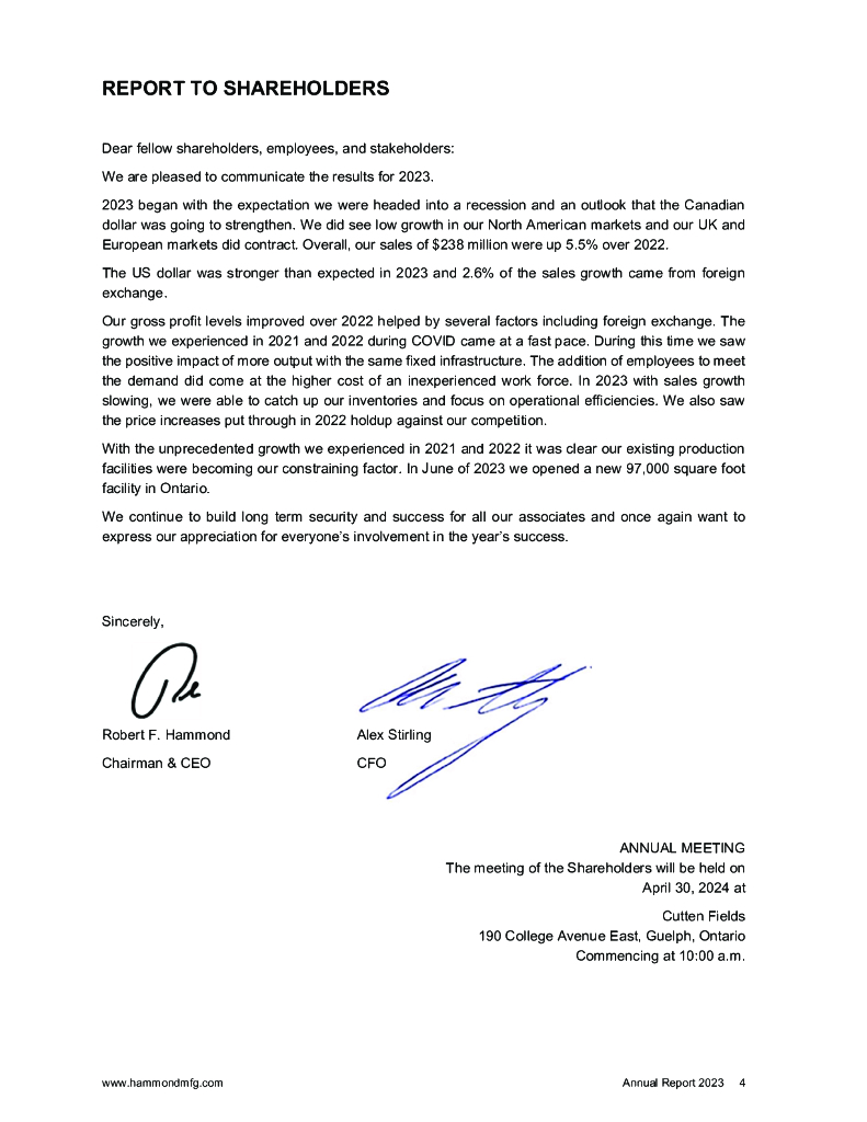 Hammond Manufacturing Company Limited(HMM)2023财年年度报告(英文版).pdf