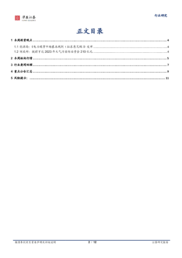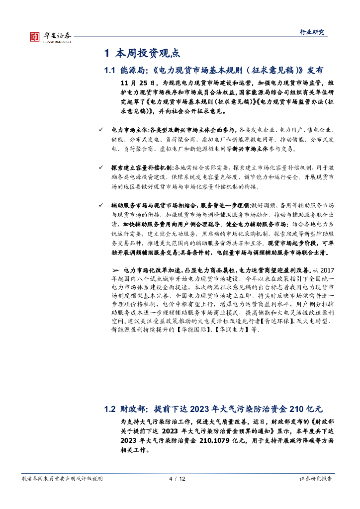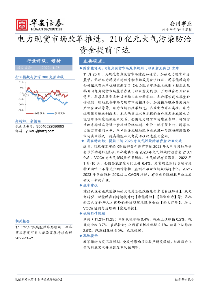 华安证券:公用事业行业周报:电力现货市场改革推进,210亿元大气污染防治资金提前下达.pdf
