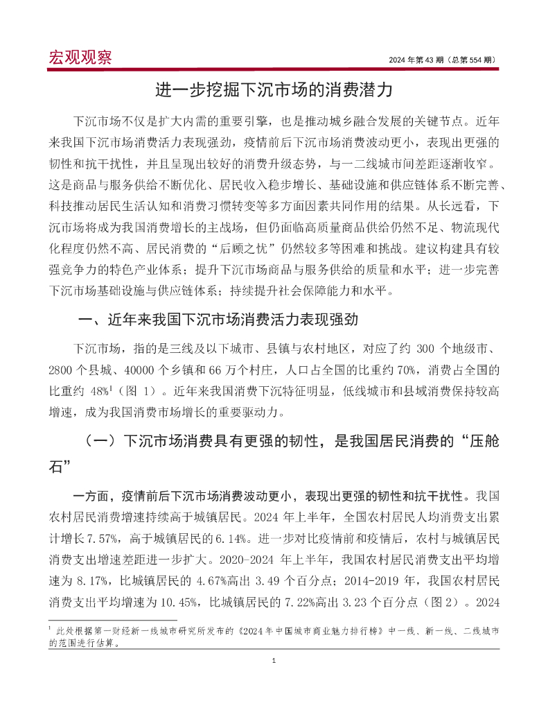 中国银行研究院:《宏观观察》2024年第43期:进一步挖掘下沉市场的消费潜力.pdf