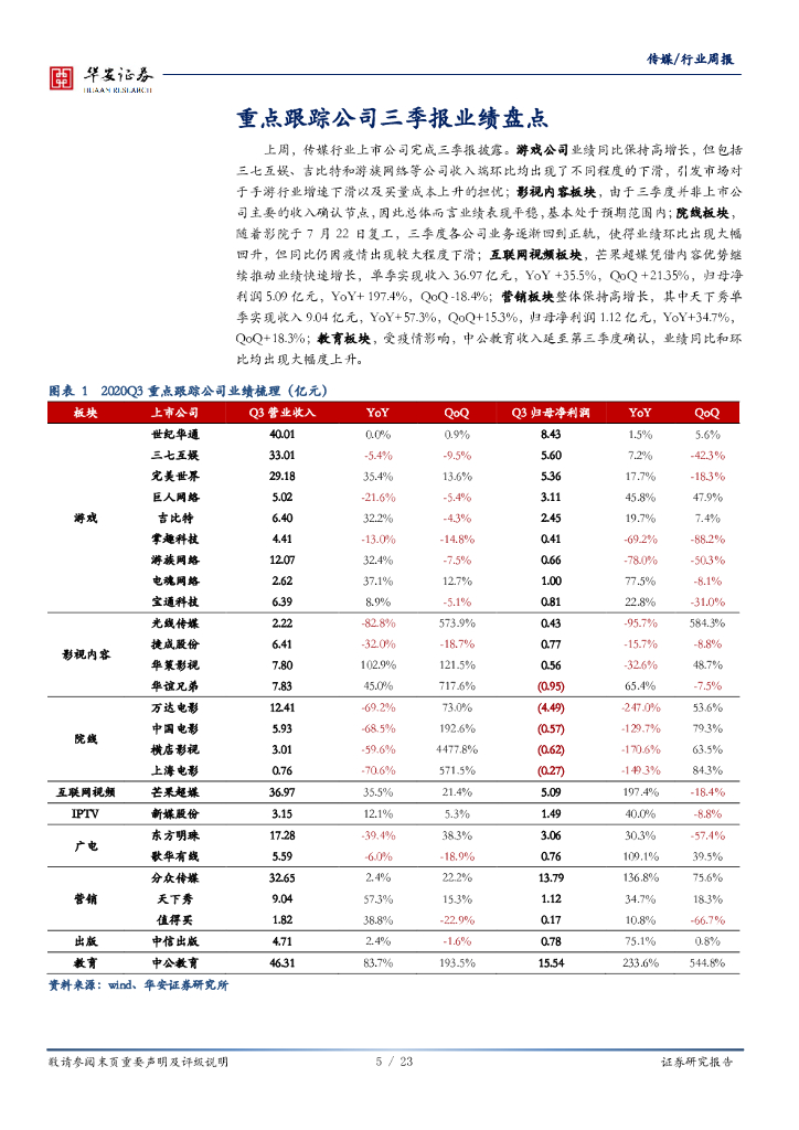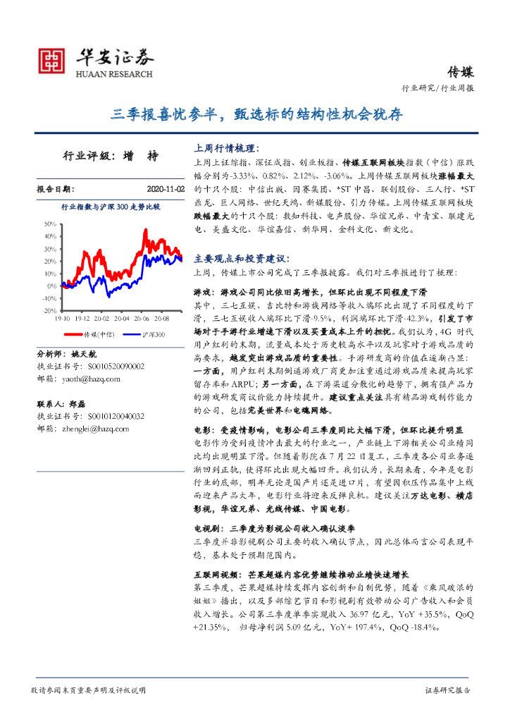 华安证券:传媒行业周报:三季报喜忧参半,甄选标的结构性机会犹存.pdf