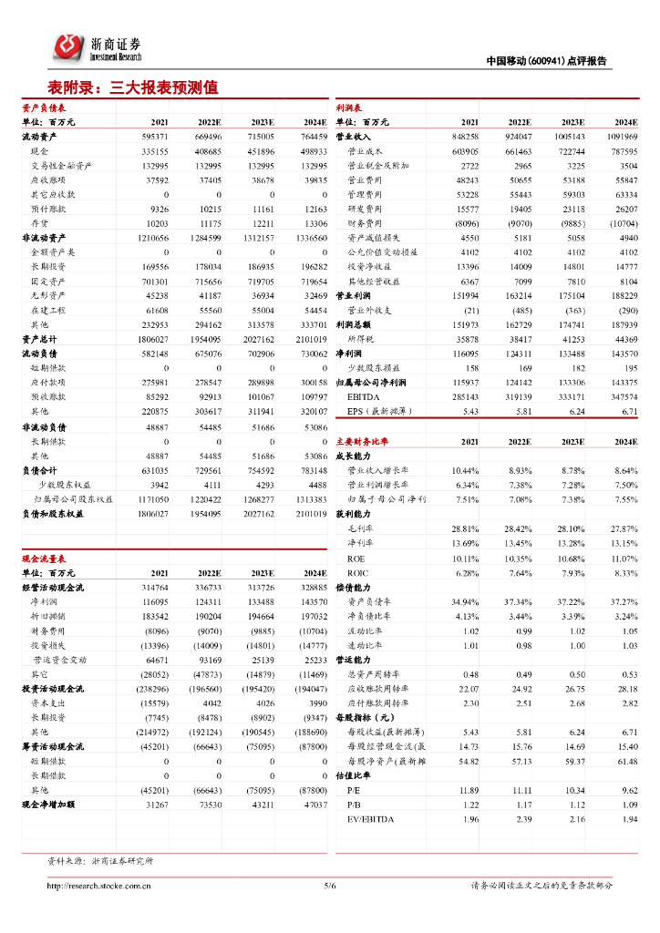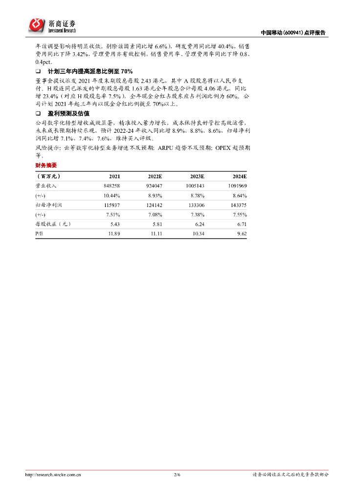 浙商证券:中国移动2021年年报点评:数字化转型收入增长强劲有利于估值提升.pdf