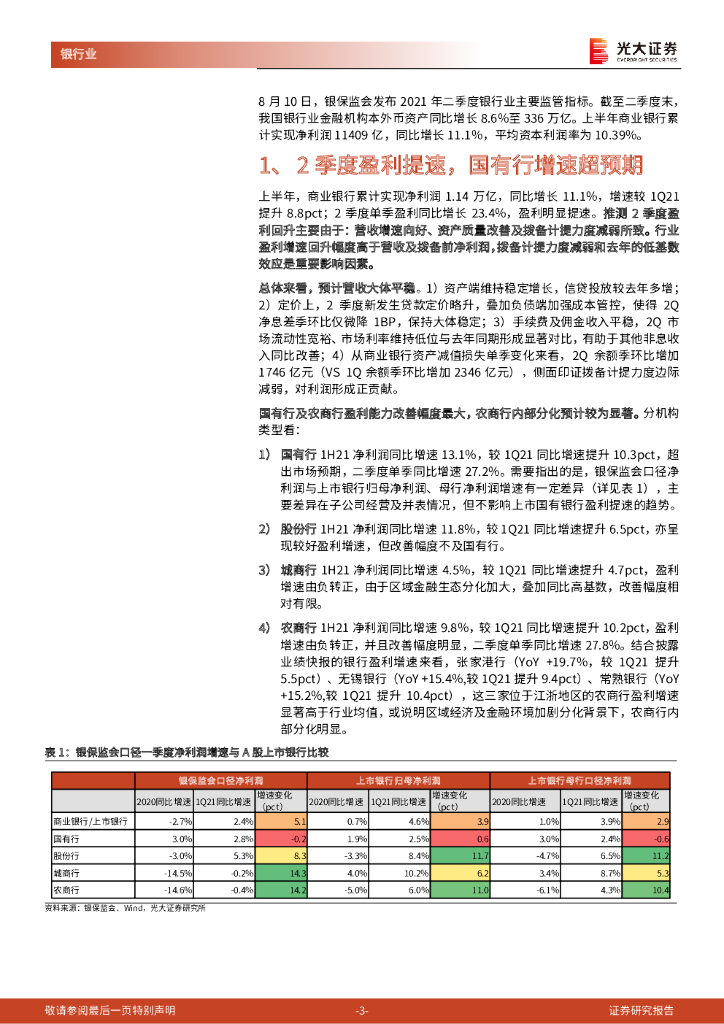 光大证券:2021年二季度银行业主要监管指标点评:国有行盈利回升超预期,全行业资产质量改善.pdf