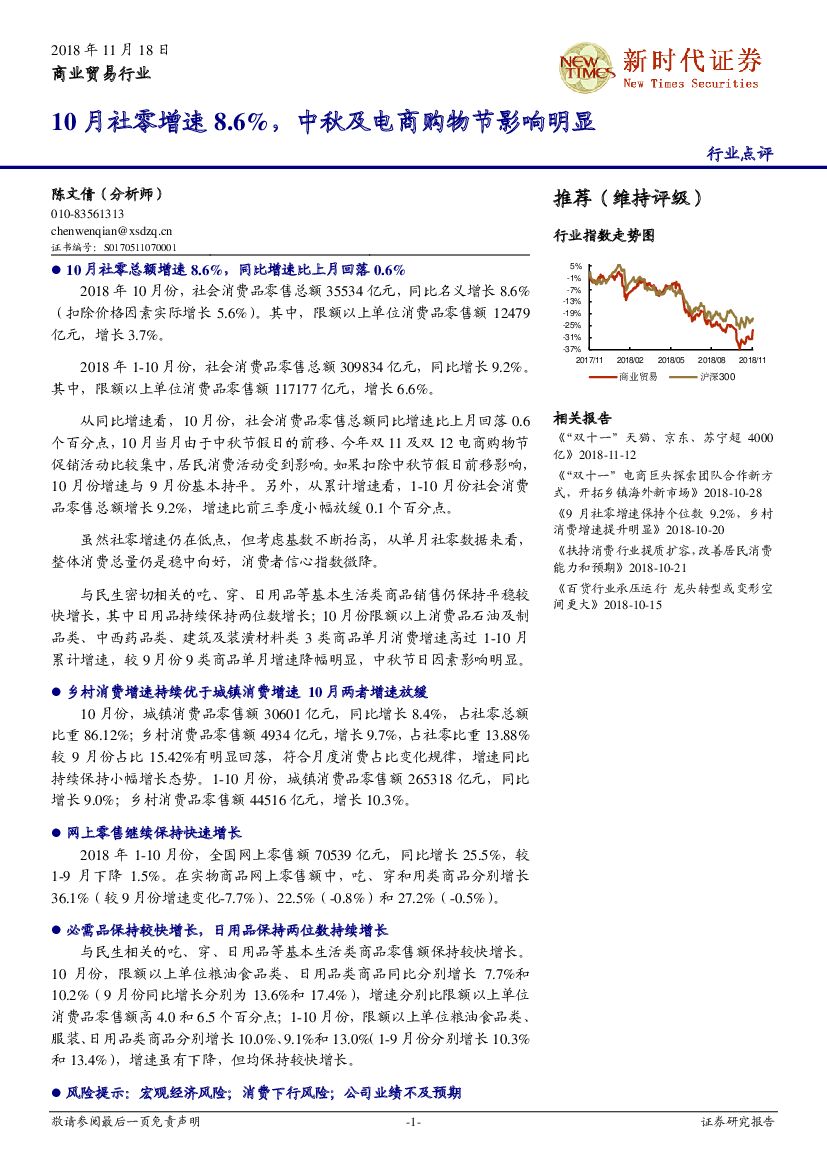 新时代证券:商业贸易行业:10月社零增速8.6%,中秋及电商购物节影响明显.pdf
