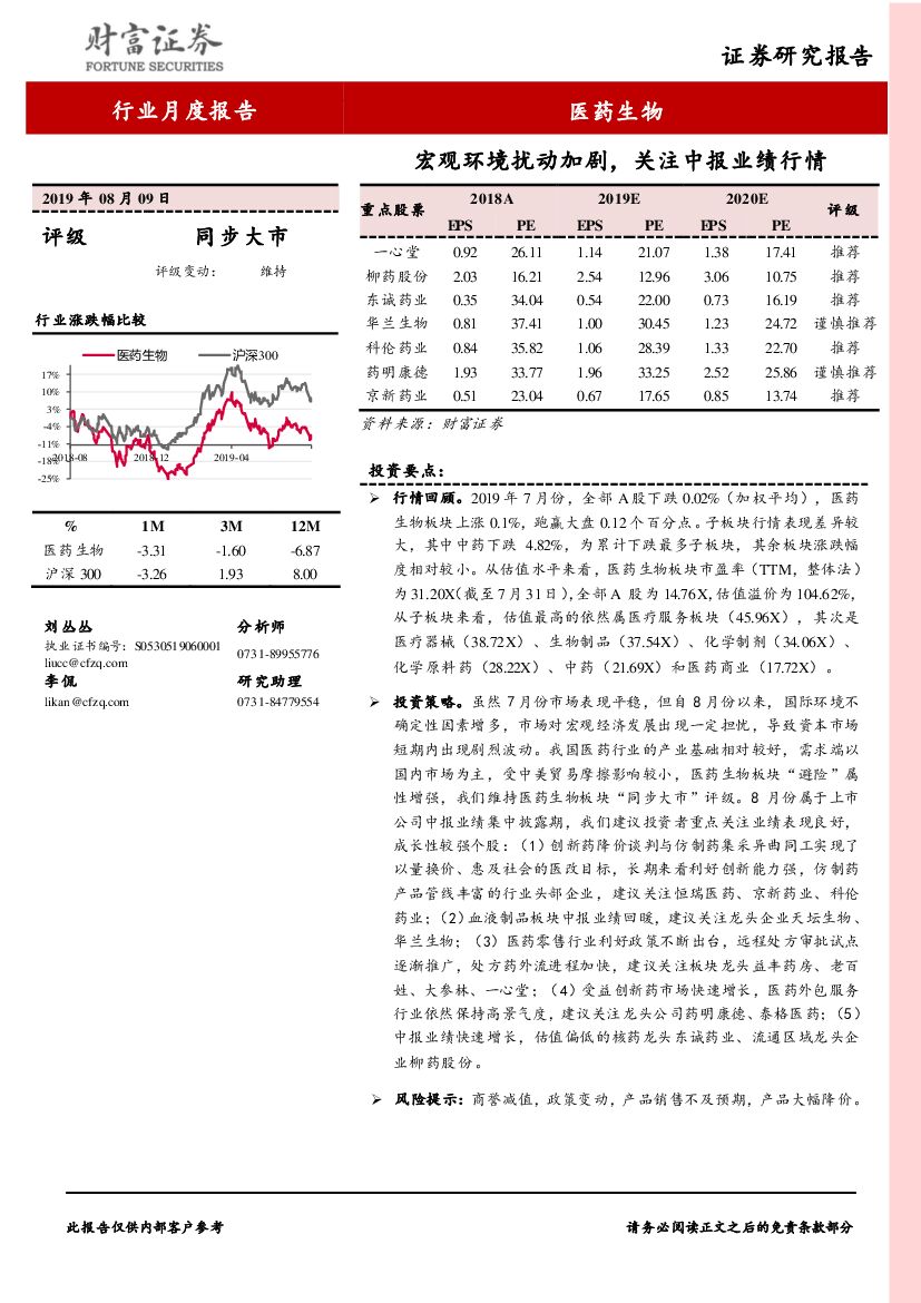 财富证券:医药生物行业月度报告:宏观环境扰动加剧,关注中报业绩行情.pdf
