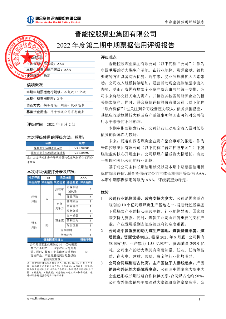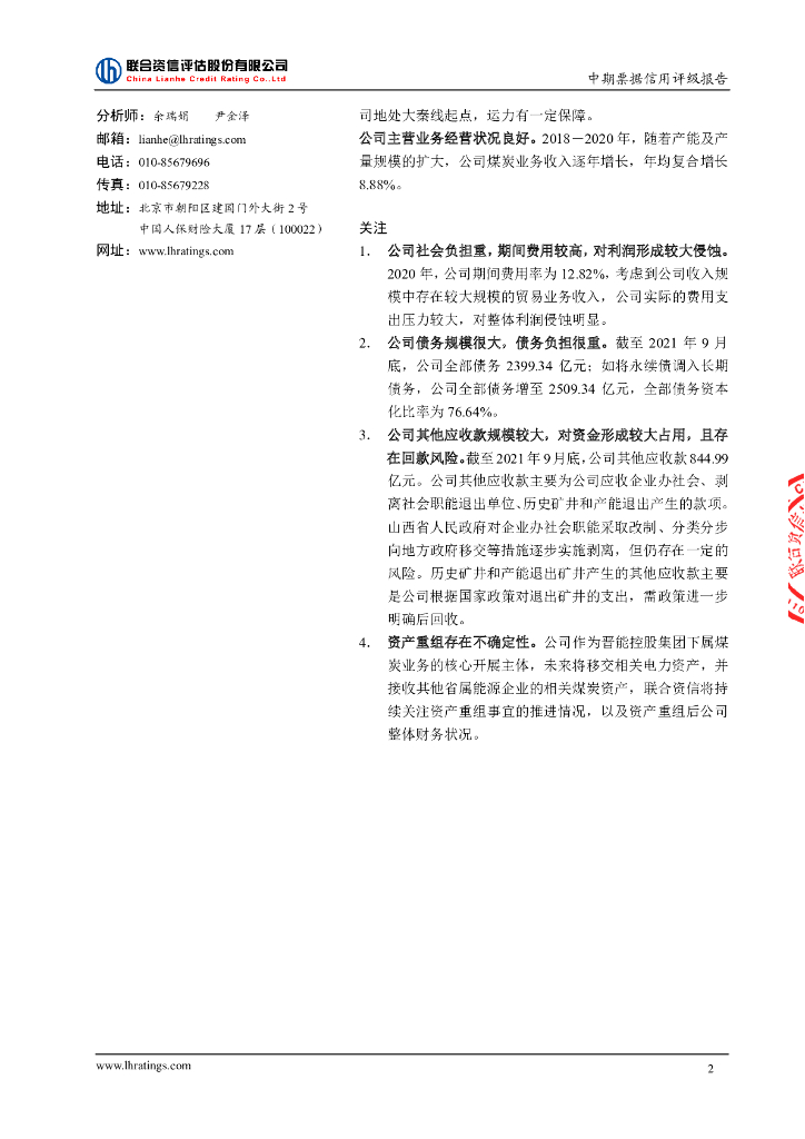 联合资信:晋能控股煤业集团有限公司2022年度第二期中期票据信用评级报告.pdf