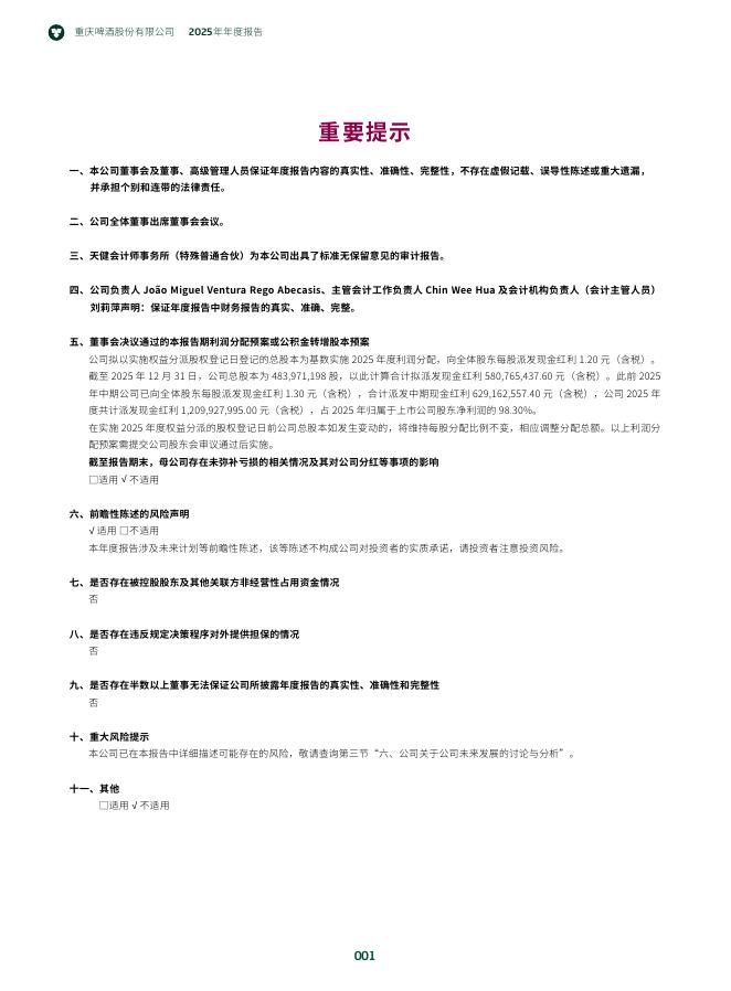 600132-重庆啤酒:重庆啤酒股份有限公司2025年年度报告.pdf