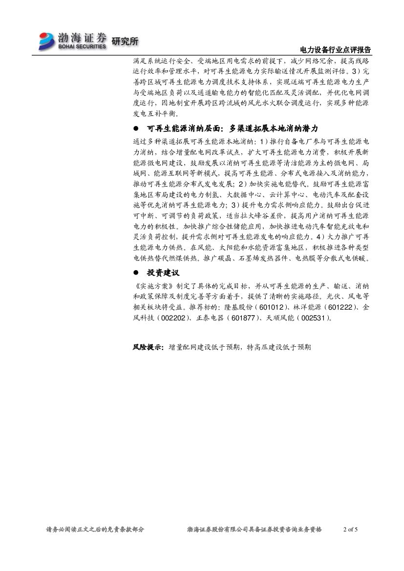 渤海证券:电力设备行业点评:优化可再生能源跨区输送,大力拓展本地消纳.pdf