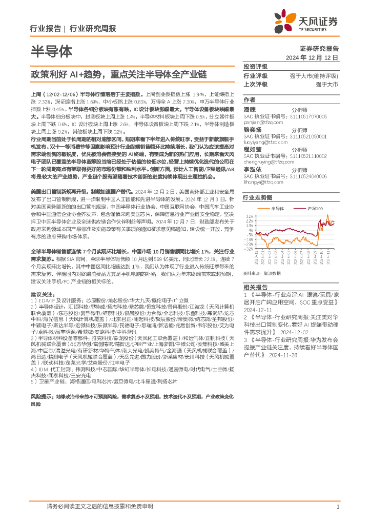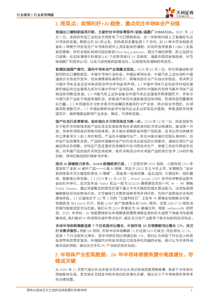 天风证券:半导体行业研究周报:政策利好AI+趋势,重点关注半导体全产业链.pdf