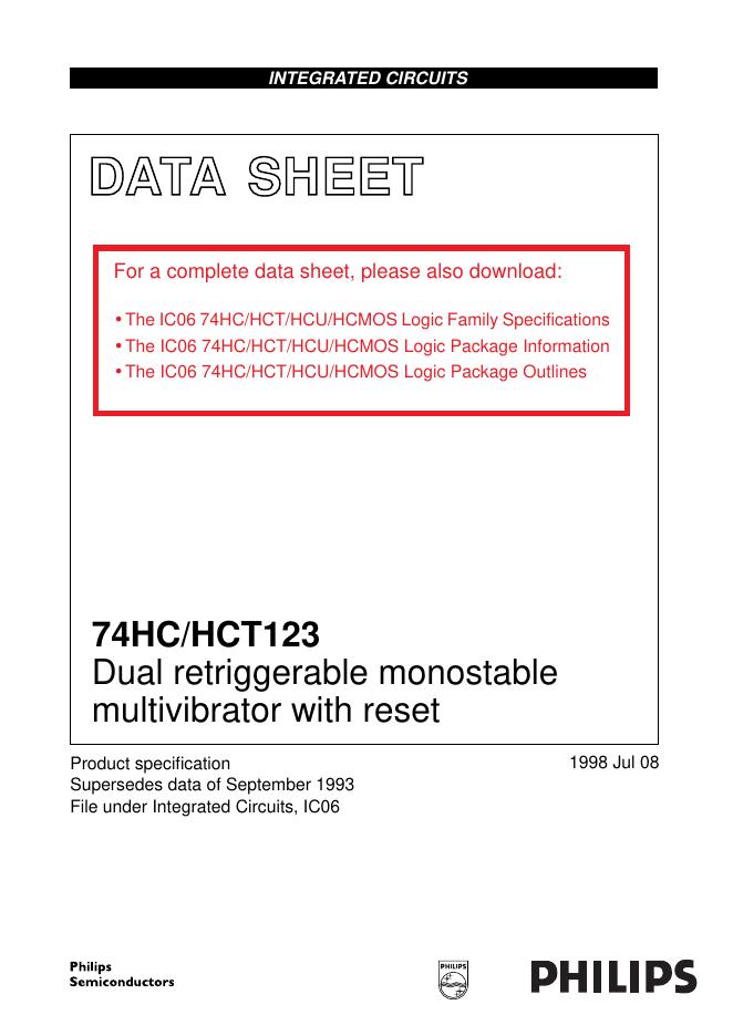 philips 74HC/HCT123 Dual retriggerable monostable multivibrator with reset 数据手册.pdf