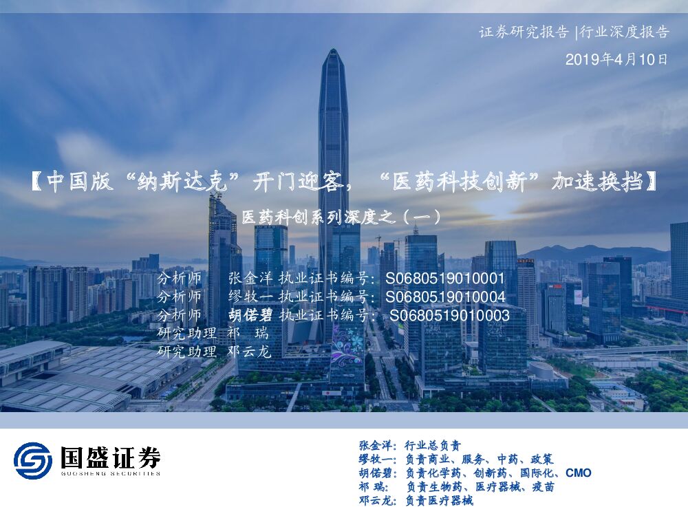 国盛证券:医药科创系列深度之(一):【中国版“纳斯达克”开门迎客,“医药科技创新”加速换挡】.pdf