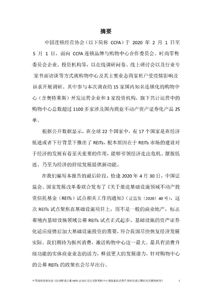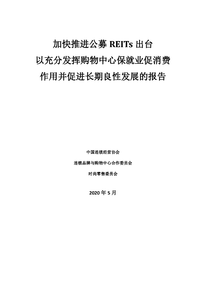 CCFA:加快推进公募REITs出台以充分发挥购物中心保就业促消费作用并促进长期良性发展的报告.pdf