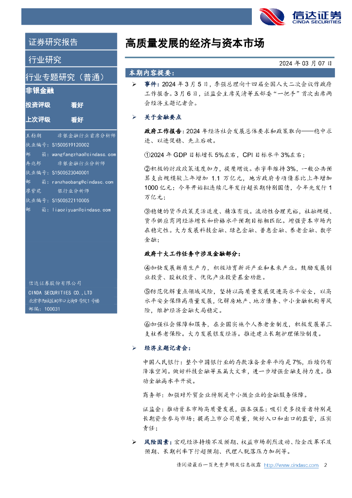 信达证券:学习2024年政府工作报告和经济主题记者会有感:金融:高质量发展的经济与资本市场.pdf