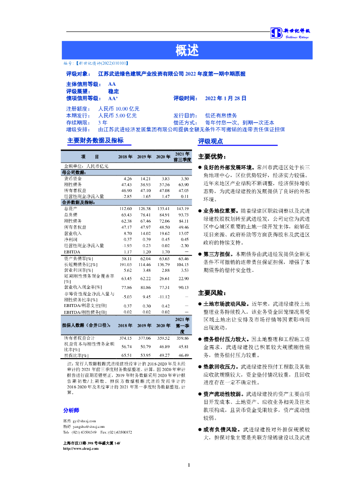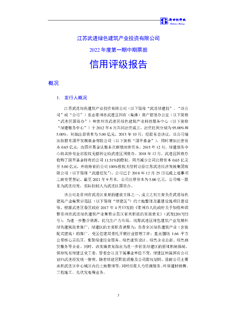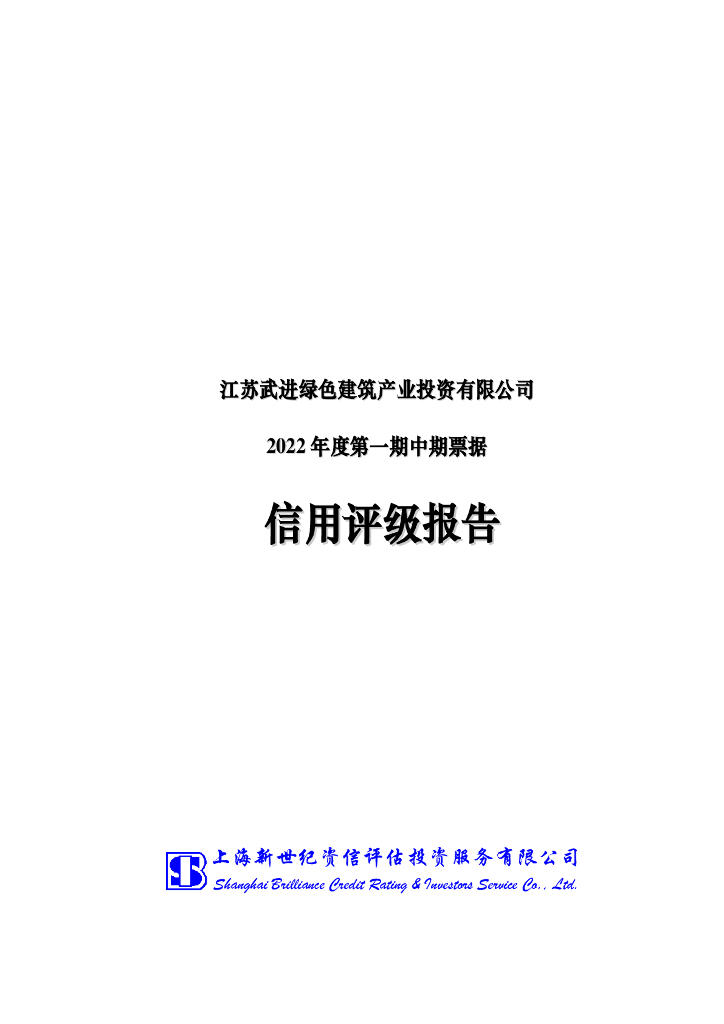 新世纪:江苏武进绿色建筑产业投资有限公司2022年度第一期中期票据信用评级报告及跟踪评级安排.pdf