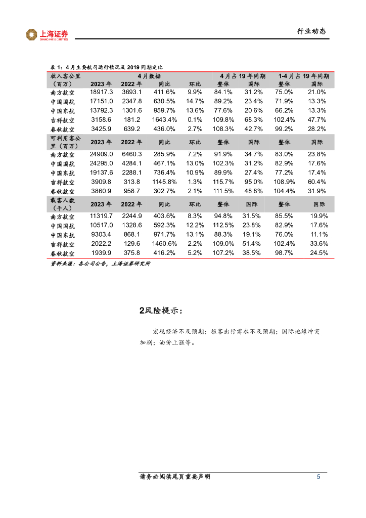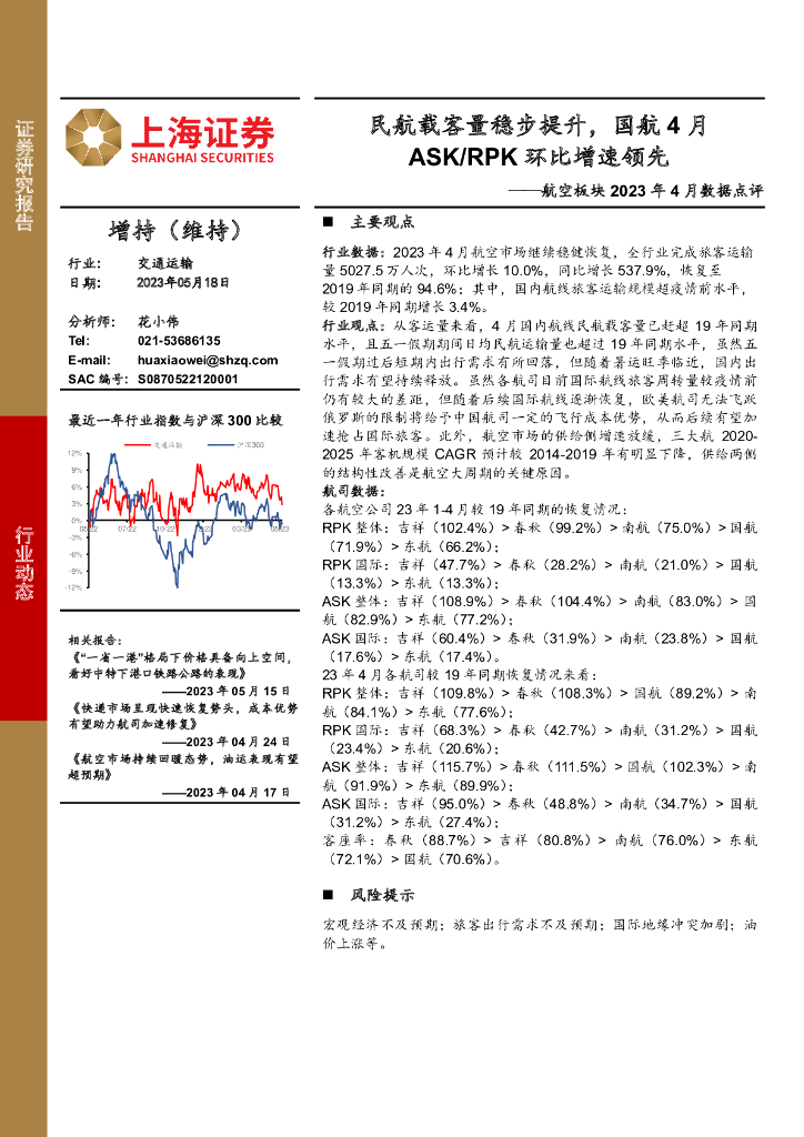 上海证券:航空板块2023年4月数据点评:民航载客量稳步提升,国航4月ASK/RPK环比增速领先.pdf
