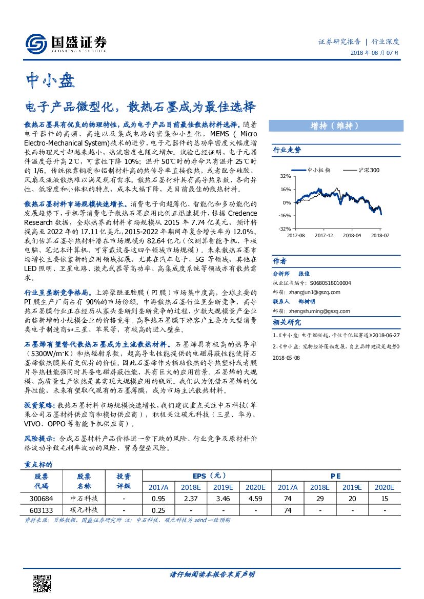 国盛证券:中小盘行业深度:电子产品微型化,散热石墨成为最佳选择.pdf
