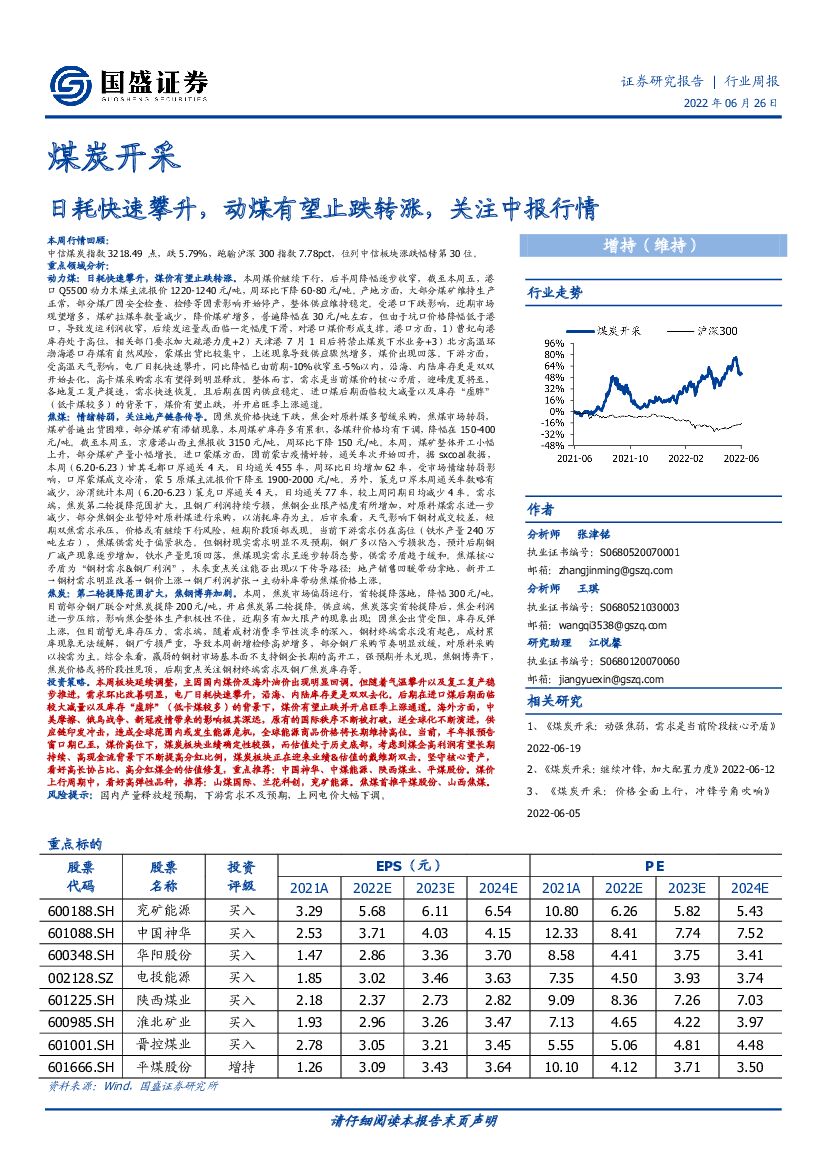 国盛证券:煤炭开采行业周报:日耗快速攀升,动煤有望止跌转涨,关注中报行情.pdf