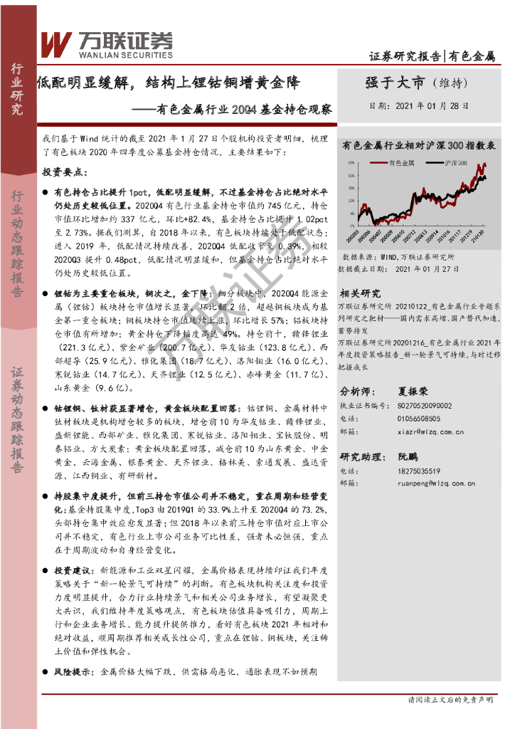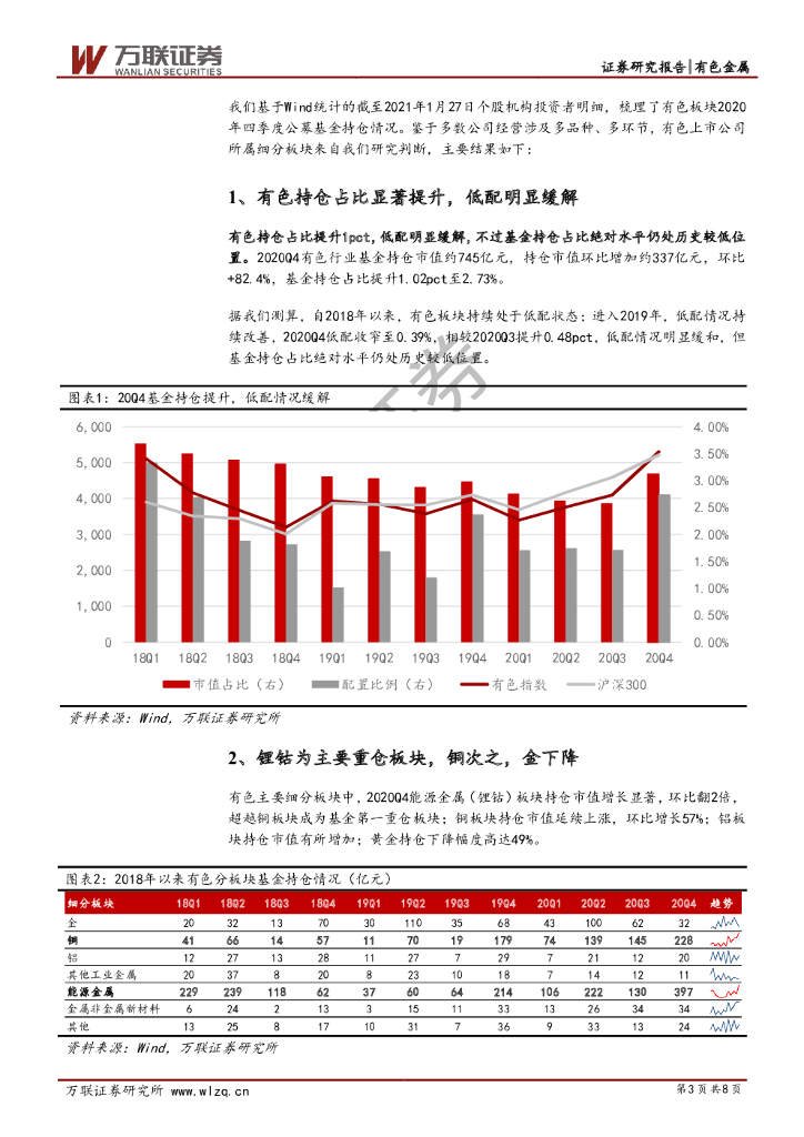 万联证券:有色金属行业20Q4基金持仓观察:低配明显缓解,结构上锂钴铜增黄金降.pdf