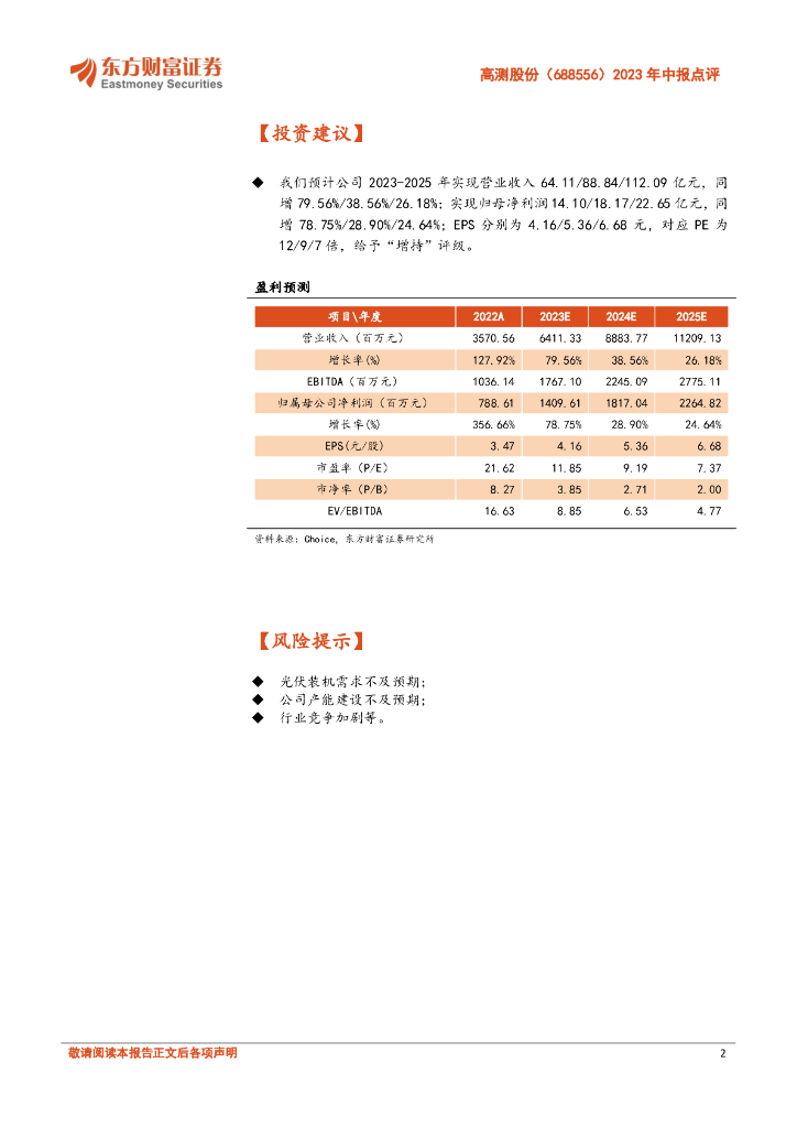 东方财富证券:高测股份(688556)-2023年中报点评:中报业绩表现亮眼,切片产能加速推进.pdf