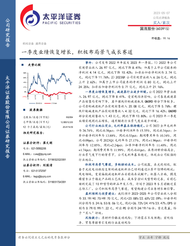 太平洋证券:国茂股份(603915)-一季度业绩恢复增长,积极布局景气成长赛道.pdf