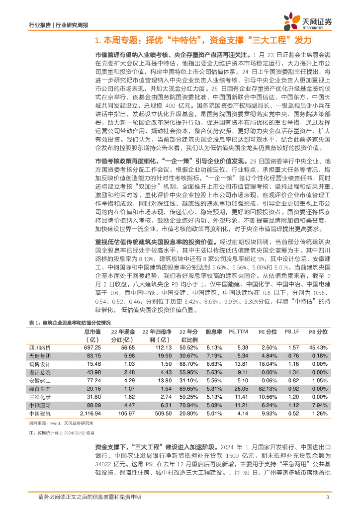 天风证券:建筑装饰行业研究周报:择优“中特估”,资金支撑“三大工程”发力.pdf