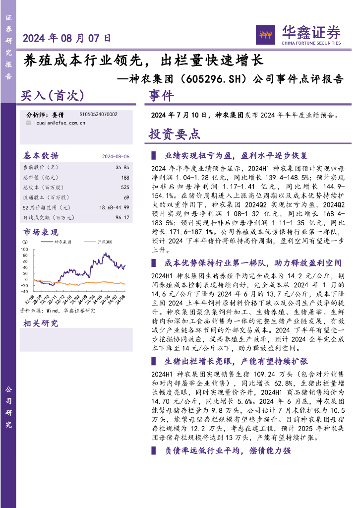 华鑫证券:神农集团(605296)-公司事件点评报告:养殖成本行业领先,出栏量快速增长.pdf