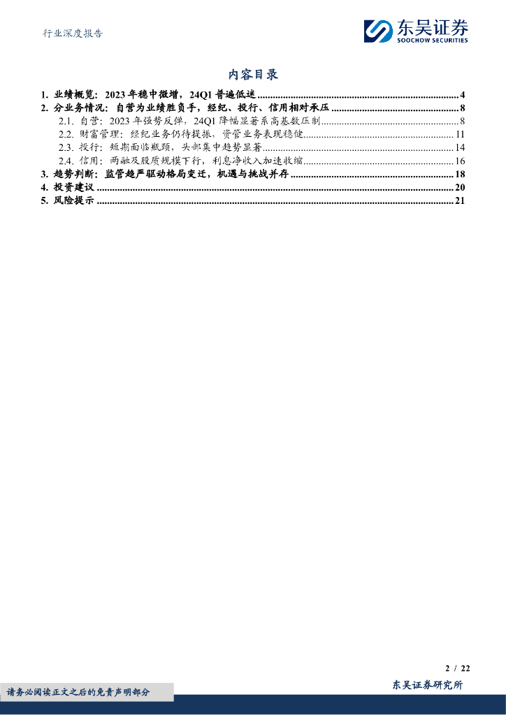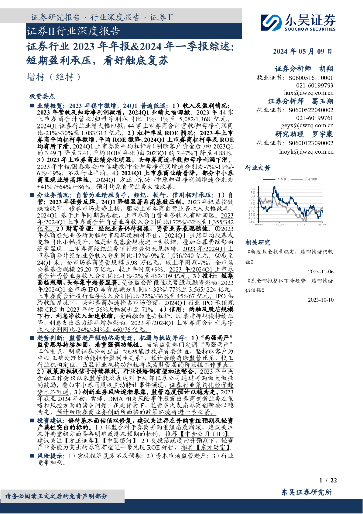 东吴证券:证券行业2023年年报&2024年一季报综述:短期盈利承压,看好触底复苏.pdf