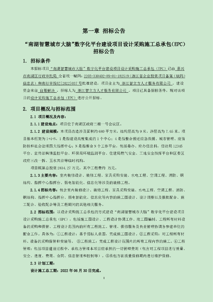 “南湖智慧城市大脑”数字化平台建设项目设计采购施工总承包(EPC)招标文件.pdf