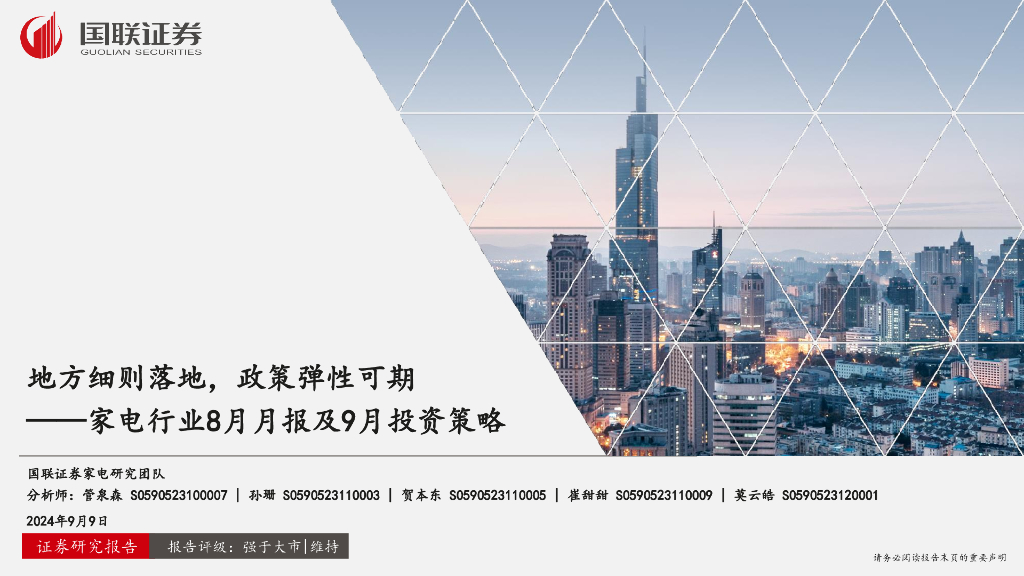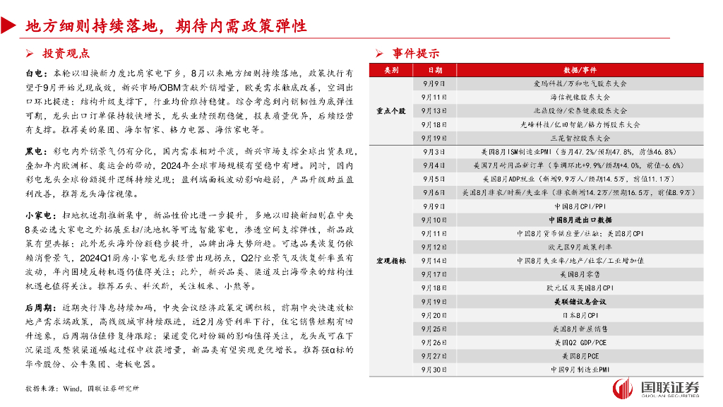 国联证券:家电行业8月月报及9月投资策略:地方细则落地,政策弹性可期.pdf