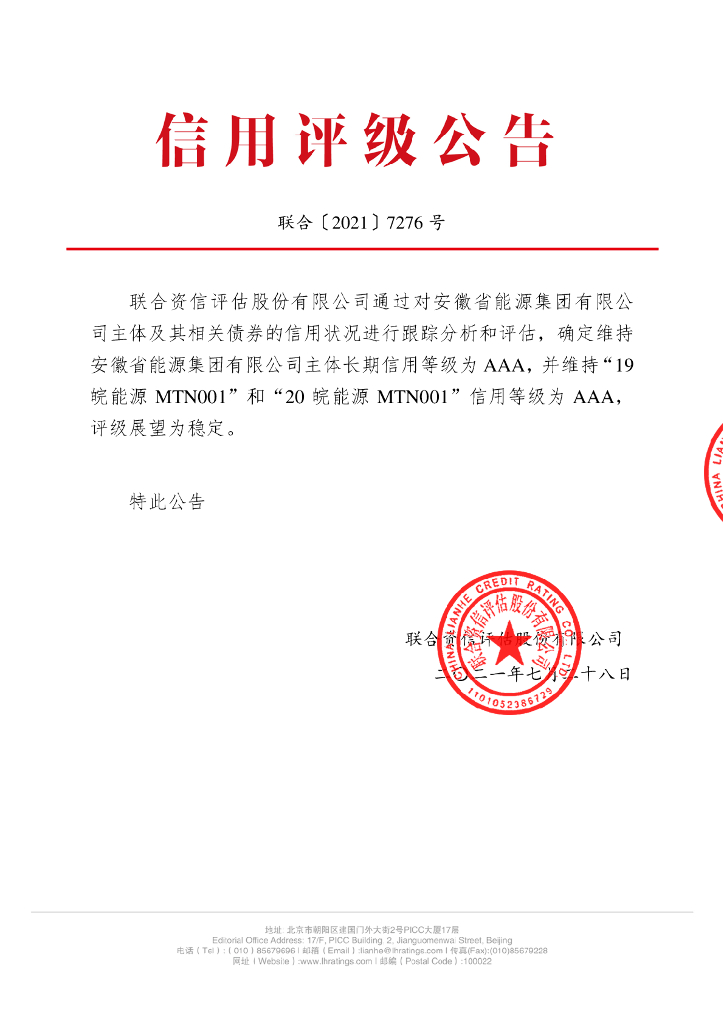 联合资信:安徽省能源集团有限公司2021年跟踪评级报告.pdf