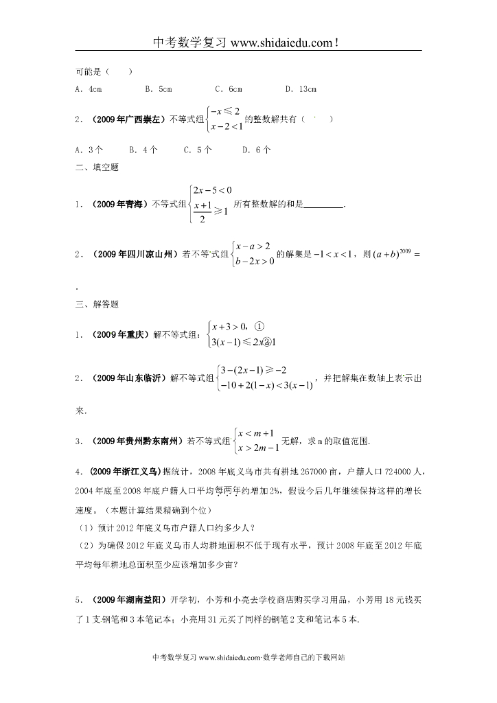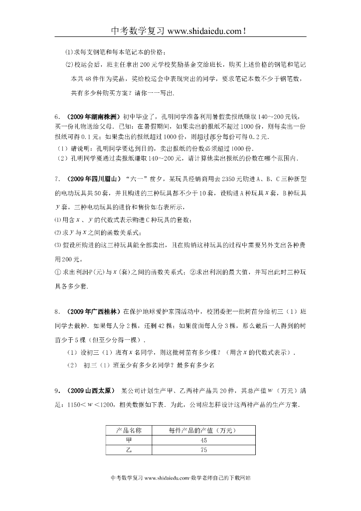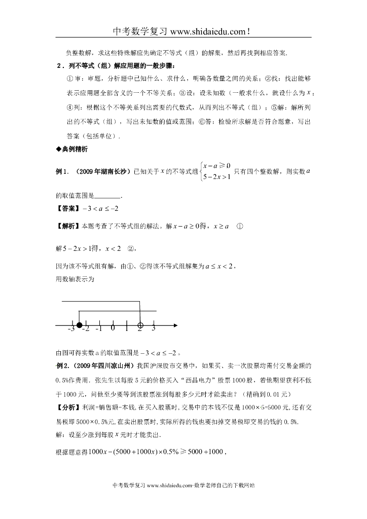 中考数学专题复习教学案——一元一次不等式(组)应用.doc
