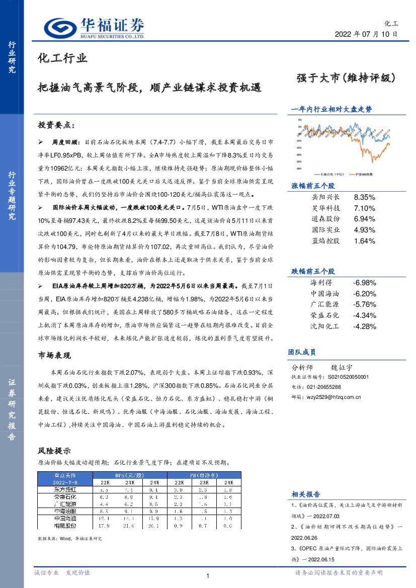 华福证券:化工行业:把握油气高景气阶段,顺产业链谋求投资机遇.pdf