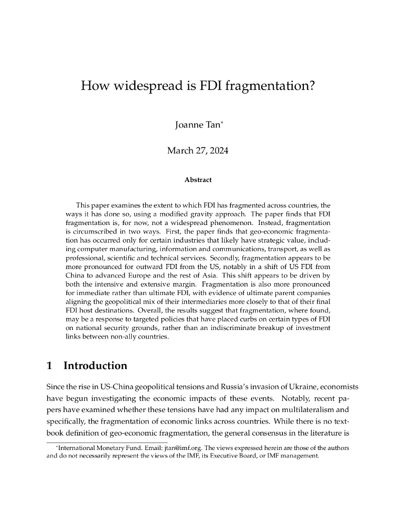 国际货币基金组织:2024外国直接投资碎片化有多普遍报告(英文版).pdf