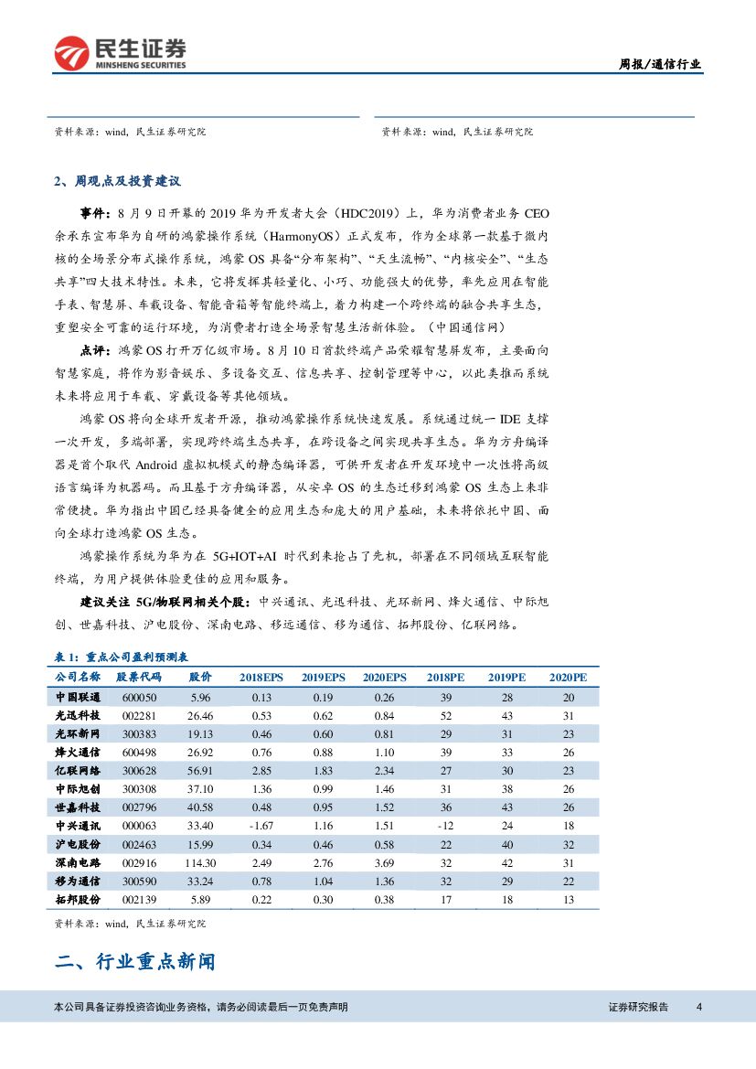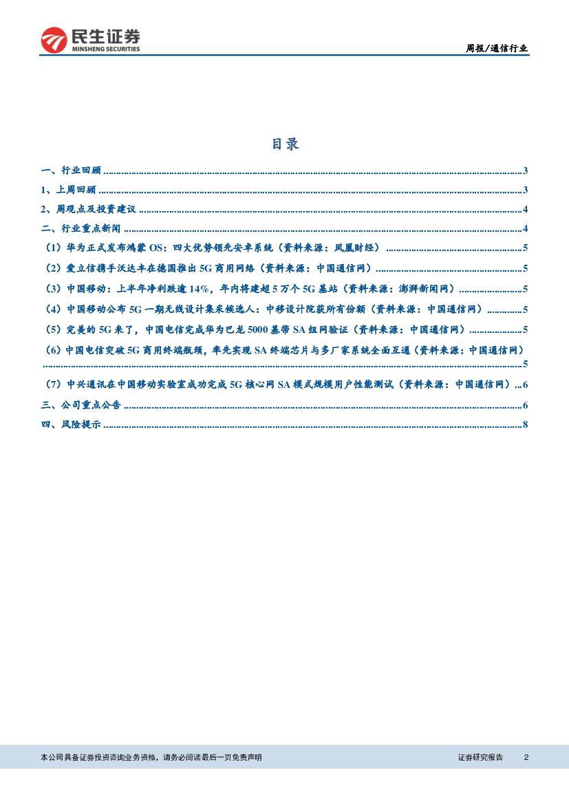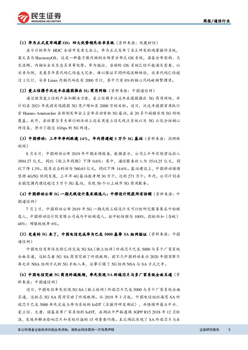 民生证券:通信行业周报:华为发布鸿蒙OS,构建智慧新生态.pdf