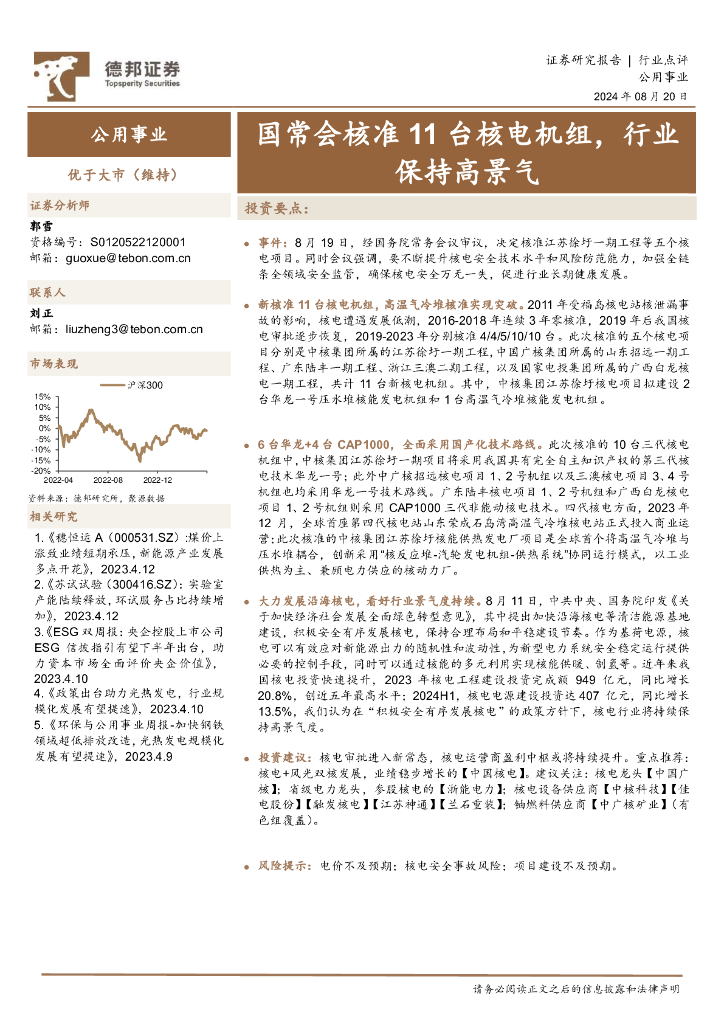 德邦证券:公用事业:国常会核准11台核电机组,行业保持高景气.pdf