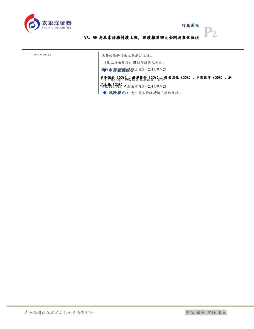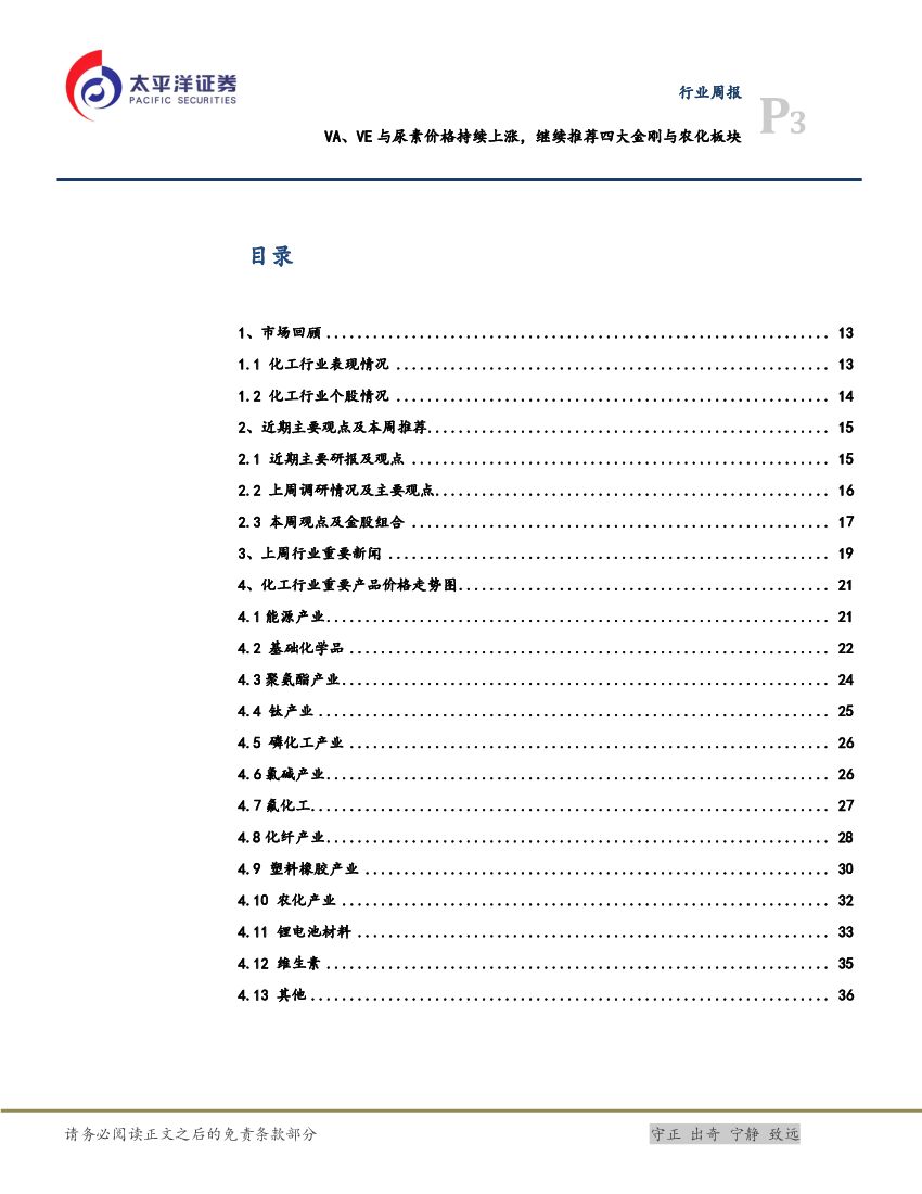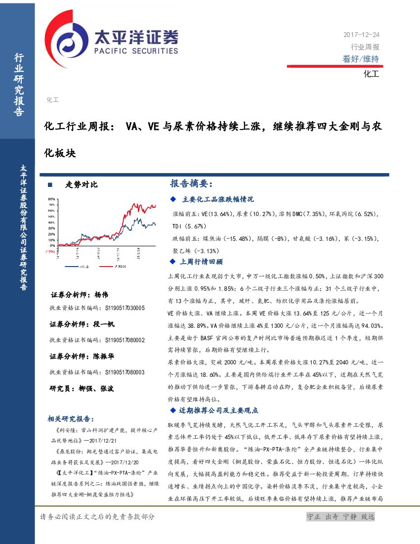 太平洋证券:化工行业周报:VA、VE与尿素价格持续上涨,继续推荐四大金刚与农化板块.pdf