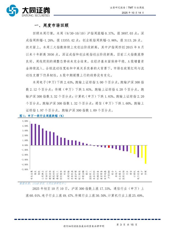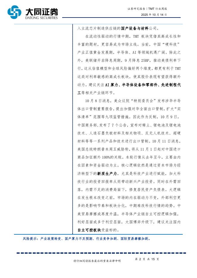 大同证券:TMT行业周报:中美贸易摩擦或再度升温,半导体自主可控逻辑加强.pdf