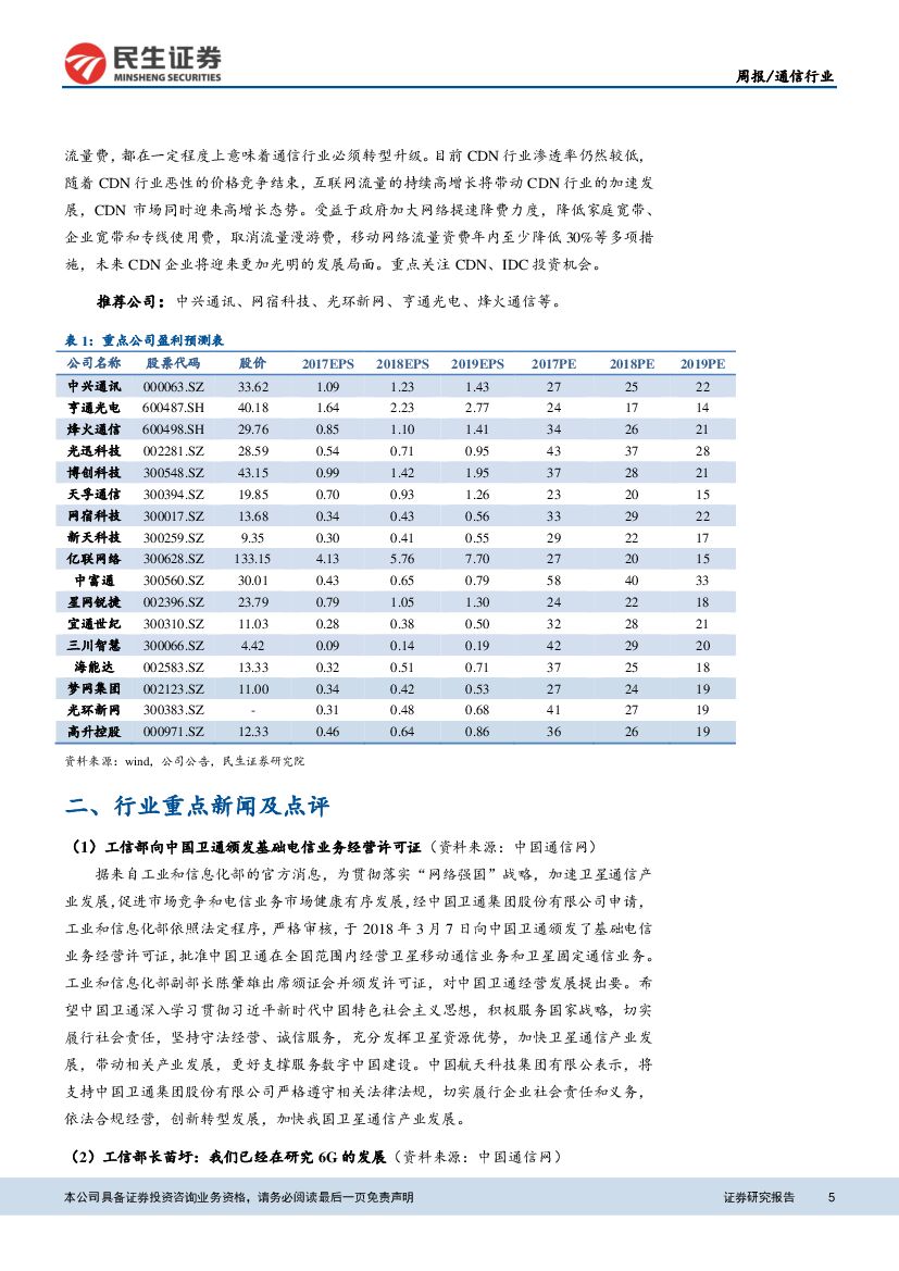 民生证券:通信行业周报:加大提速降费力度,利好CDN、IDC产业.pdf