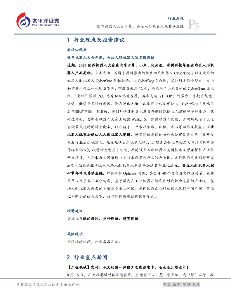 太平洋证券:机械行业周报:世界机器人大会开幕,关注人形机器人及其供应链.pdf