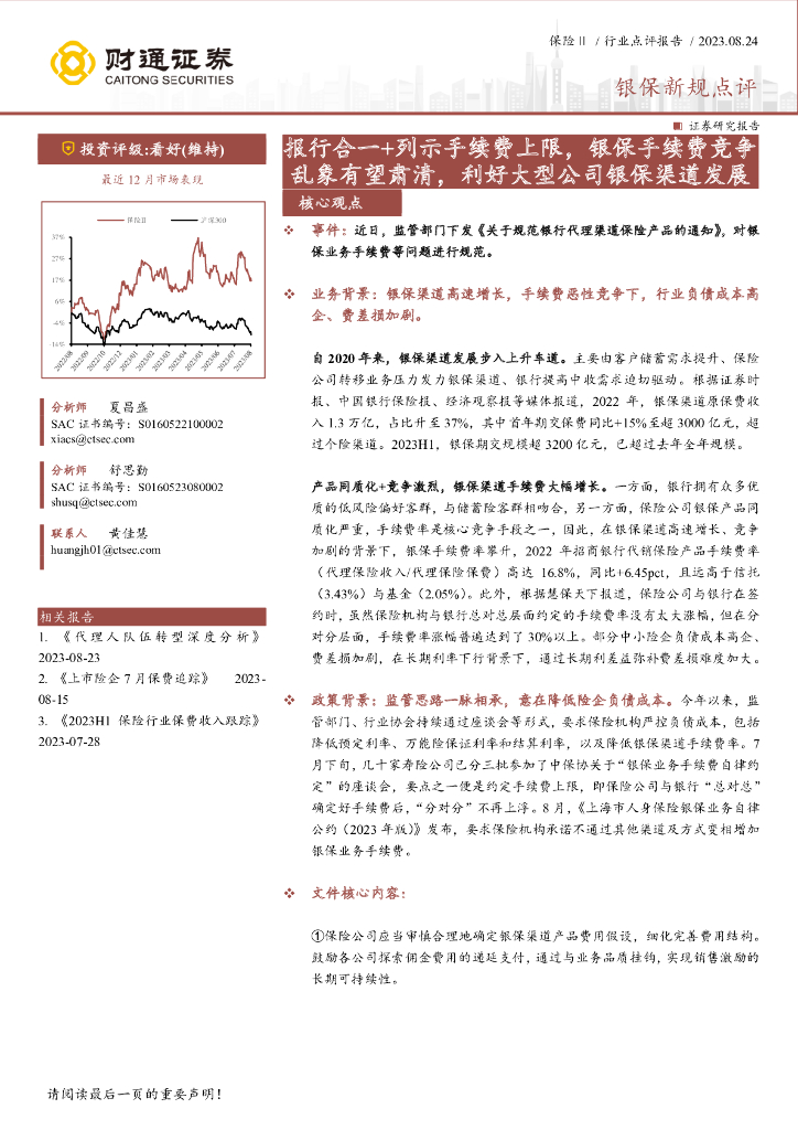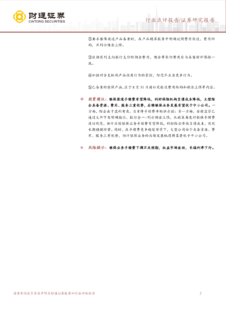财通证券:银保新规点评:报行合一+列示手续费上限,银保手续费竞争乱象有望肃清,利好大型公司银保渠道发展.pdf