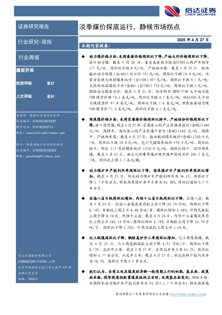 信达证券:淡季煤价探底运行,静候市场拐点.pdf