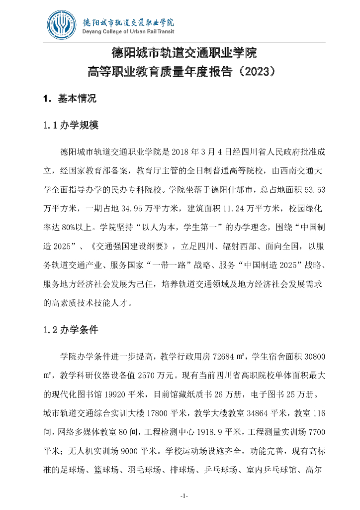 德阳城市轨道交通职业学院2023届毕业生就业质量报告.pdf