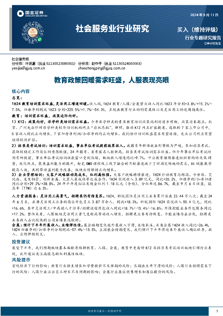 国金证券:社会服务业行业:教育政策回暖需求旺盛,人服表现亮眼.pdf