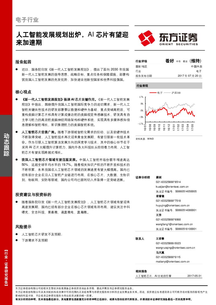 东方证券:电子行业:人工智能发展规划出炉,AI芯片有望迎来加速期.pdf