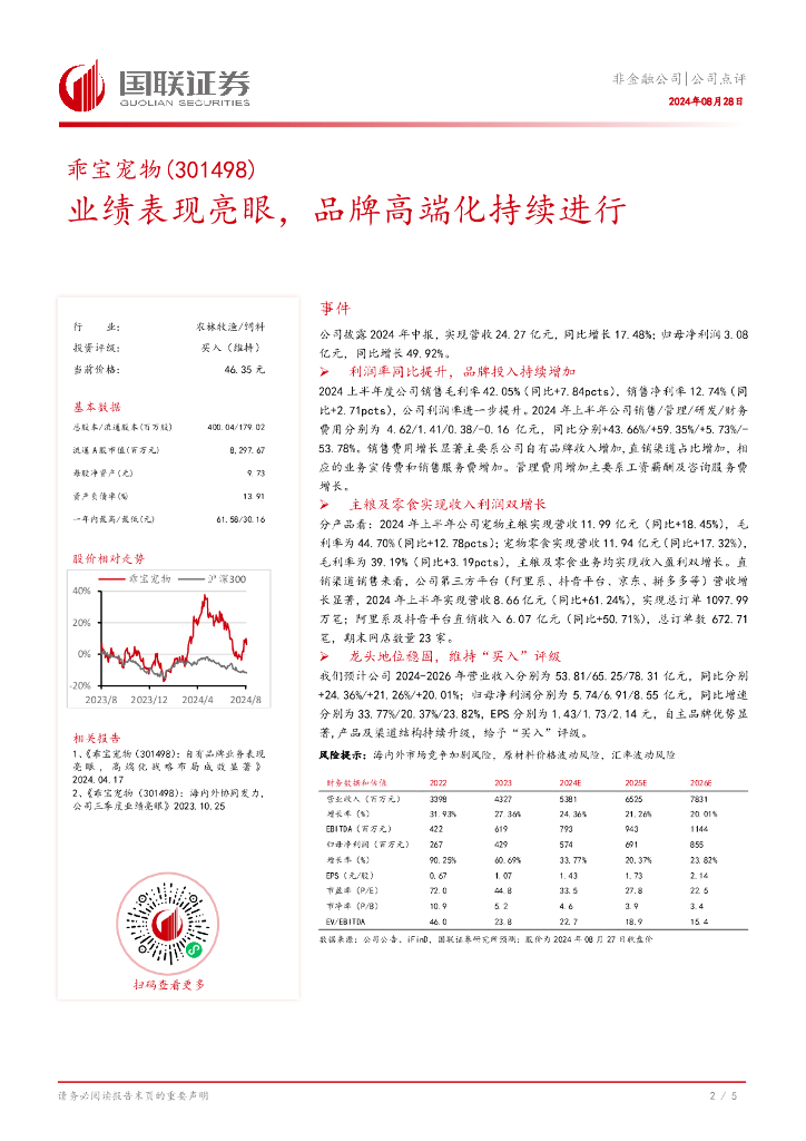 国联证券:乖宝宠物(301498)-业绩表现亮眼,品牌高端化持续进行.pdf