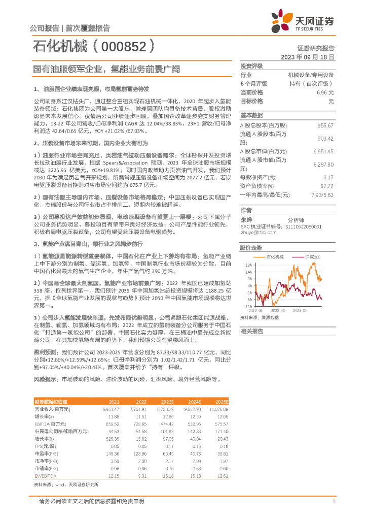 天风证券:石化机械(000852)-国有油服领军企业,氢能业务前景广阔.pdf