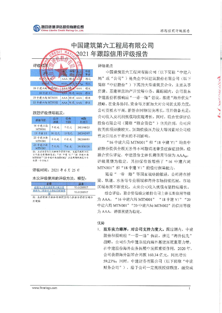 联合资信:中国建筑第六工程局有限公司2021年度跟踪信用评级报告.pdf
