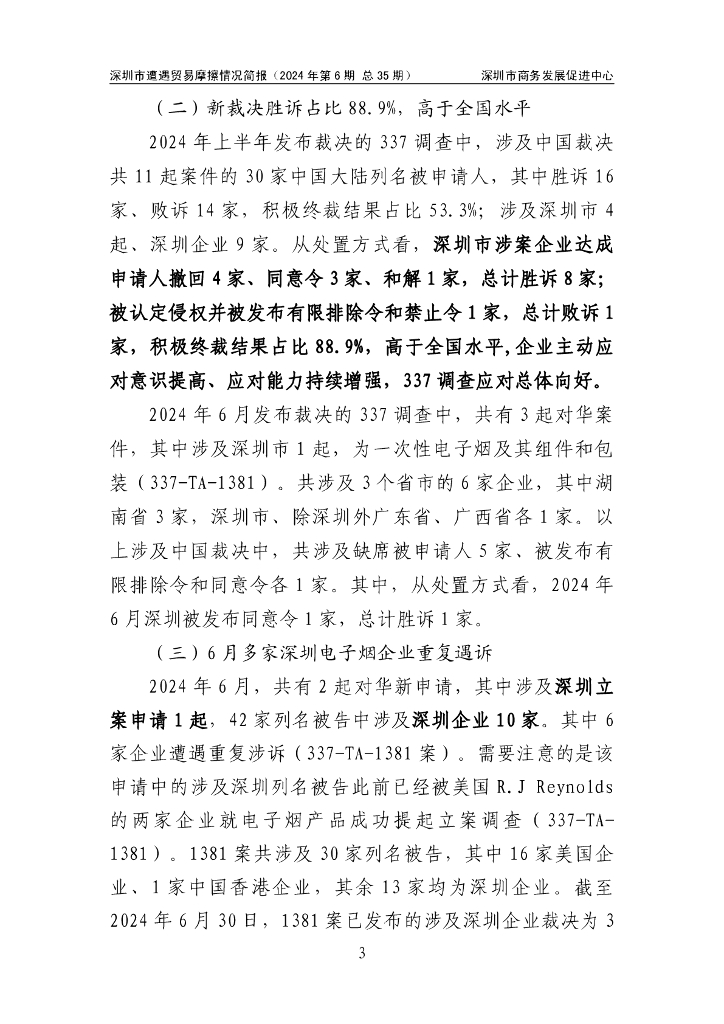2024年上半年,新立案6起,案件呈多发态势,涉案原因多为专利侵权,涉及深圳">