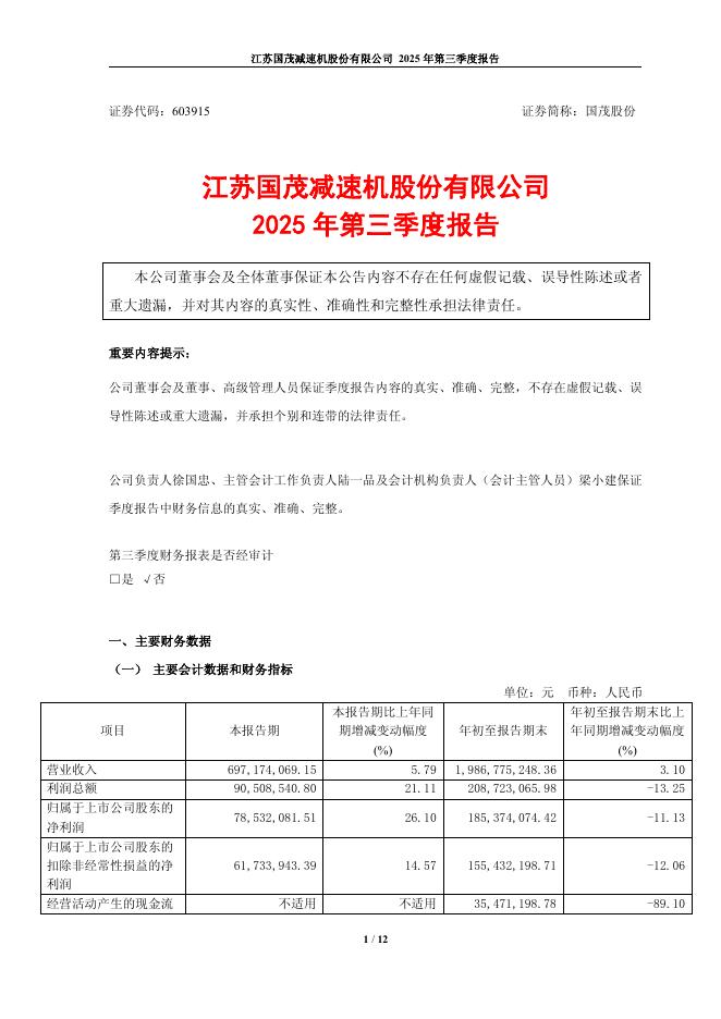 603915-国茂股份:国茂股份2025年第三季度报告.pdf